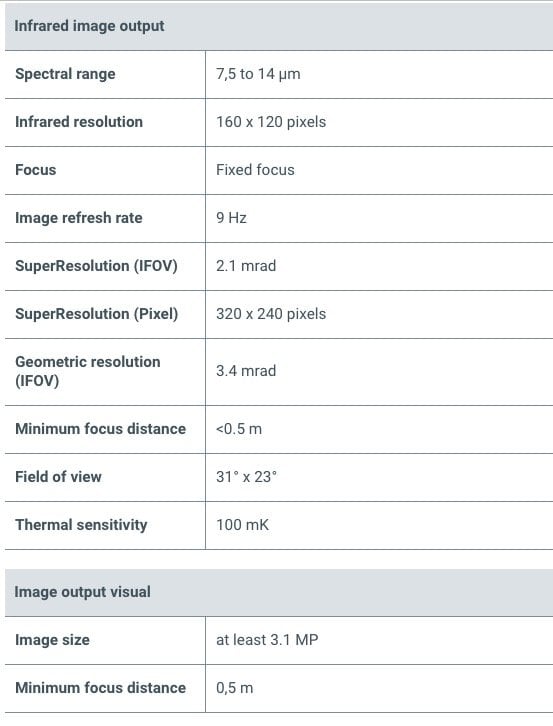 - Çok iyi görüntü kalitesi: Entegre testo SuperResolution Teknolojisi ile 160 x 120 piksel IR çözünürlük 320 x 240 piksel