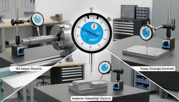 - Yüzey düzlüğü, mil salgısı, paralellik kontrolü ve makine ayar işlemleri gibi birçok ölçüm uygulamasında kullanılabilir.
