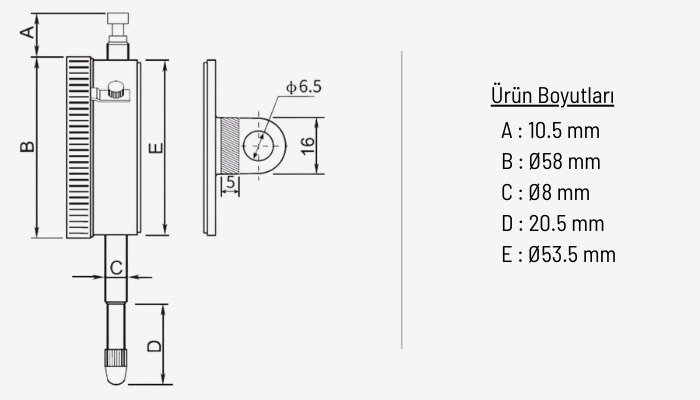 - Kulaklı arka bağlantı tasarımı sayesinde komparatör standlarına veya manyetik tabanlara güvenli şekilde monte edilebilir.
