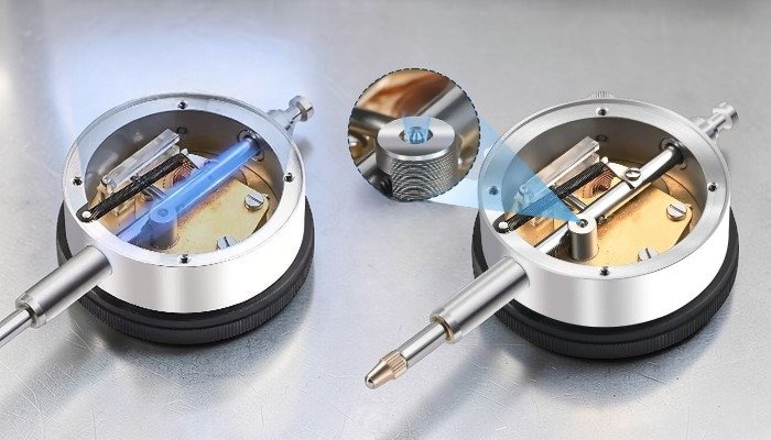 Bakır burç yapısı, sürtünmeyi ve aşınmayı azaltarak mekanizmanın daha uzun süre stabil şekilde çalışmasına yardımcı olur. Hassas taşlama ile üretilmiş mekanizma, ölçüm milinin eşmerkezli ve stabil hareket etmesini sağlayarak daha doğru ölçüm sonuçları elde edilmesini destekler. Mücevher yataklı yapı ise sürtünmeyi azaltarak ibrenin daha akıcı hareket etmesine ve mekanizmanın servis ömrünün uzamasına katkı sağlar.