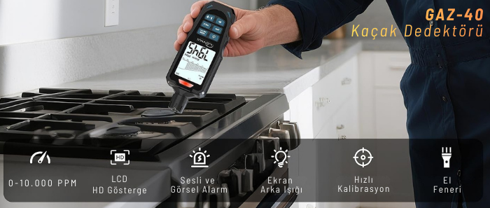 GAZ-40 Profesyonel Yanıcı Gaz Kaçak Dedektörü (Japon Figaro Sensörlü)