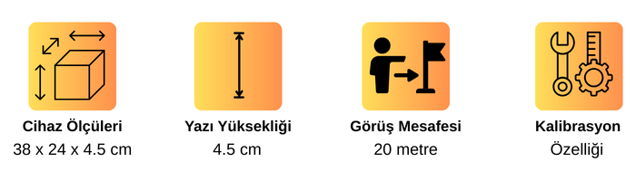 - 20 metreye kadar uzaklıktan net okunabilen büyük, yüksek parlaklıklı LED ekran