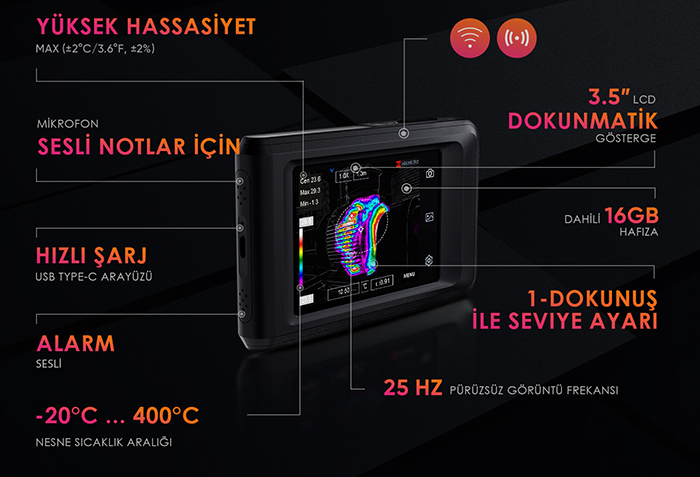 - 256 × 192 IR çözünürlük ve NETD < 40 mK hassasiyet