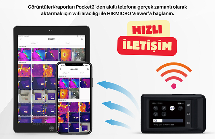 - Wi-Fi bağlantısı ve HIKMICRO Viewer uygulaması ile veri paylaşımı