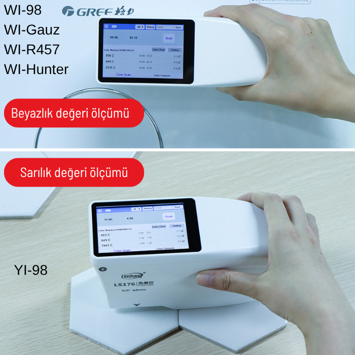 - WI-98, WI-Gauz, WI-R457, WI-Hunter beyazlık indeksleri ve YI-98 sarılık indeksi ölçümü.
