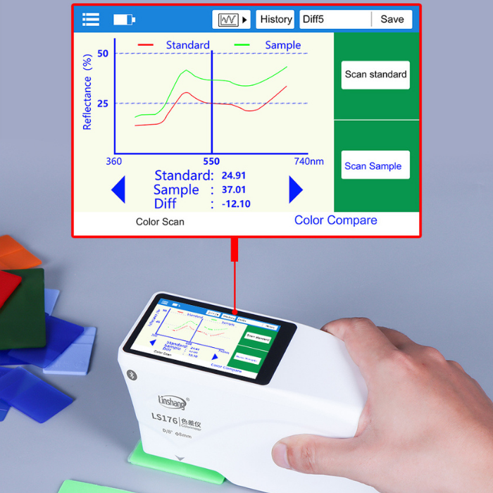 - Spektral yansıtma eğrisi görüntüleme ile detaylı renk analizi.