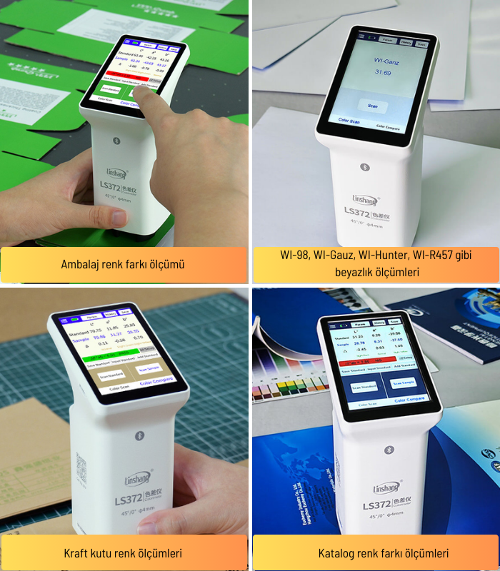 LS372 cihazında iki temel çalışma modu bulunur. Renk tarama modunda numunenin renk değerleri ölçülür ve cihaz hafızasındaki renk kartelalarından en yakın sonuçlar görüntülenebilir. Renk karşılaştırma modunda ise referans renk ile numune arasındaki ΔE farkı hesaplanır; belirlenen eşiklere göre sonuç Pass/Fail (Onay/Red) olarak değerlendirilir.