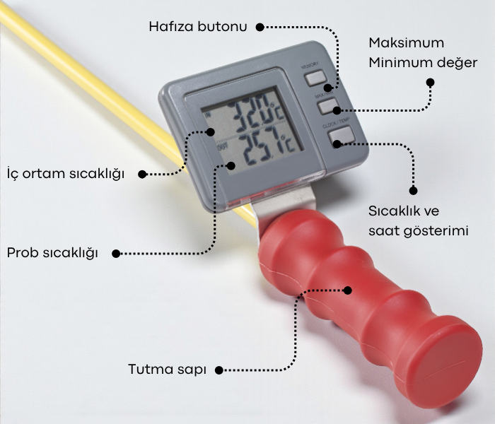 - Kullanımı kolaydır; prob yığına daldırılır ve sıcaklık sabitlenince değer doğrudan ekrandan okunur.