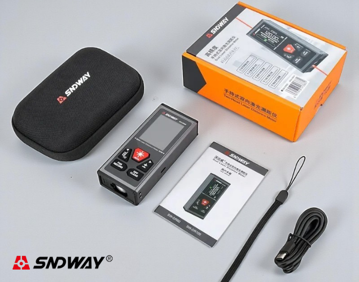 SNDWAY SW-DR60 Çift Yön Lazerli Lazermetre; ön ve arka yüzeyinde konumlandırılmış iki ayrı lazer sensörü sayesinde aynı noktadan iki farklı referansa ölçüm yapabilen gelişmiş bir mesafe ölçüm cihazıdır. Her bir sensör tek başına 60 metreye kadar ölçüm yapabilirken, çift yönlü ölçüm modunda toplam 120 metreye kadar efektif ölçüm kapasitesi sunar.
