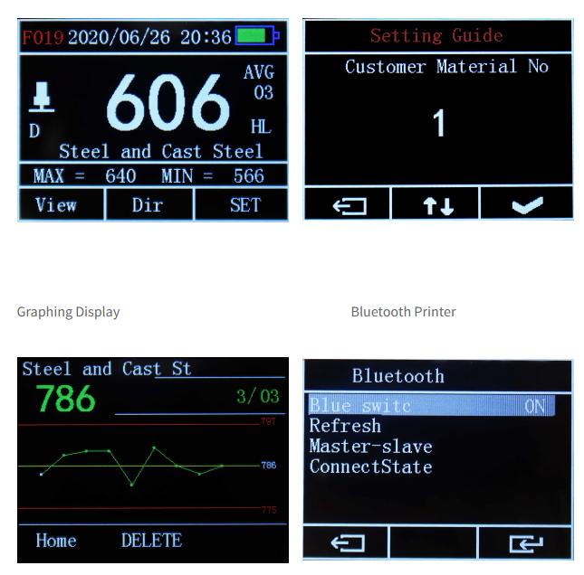 - Dökme çelik (cast steel) malzeme seçeneği; D/DC darbe probu ile ölçümde HB değeri doğrudan okunabilir