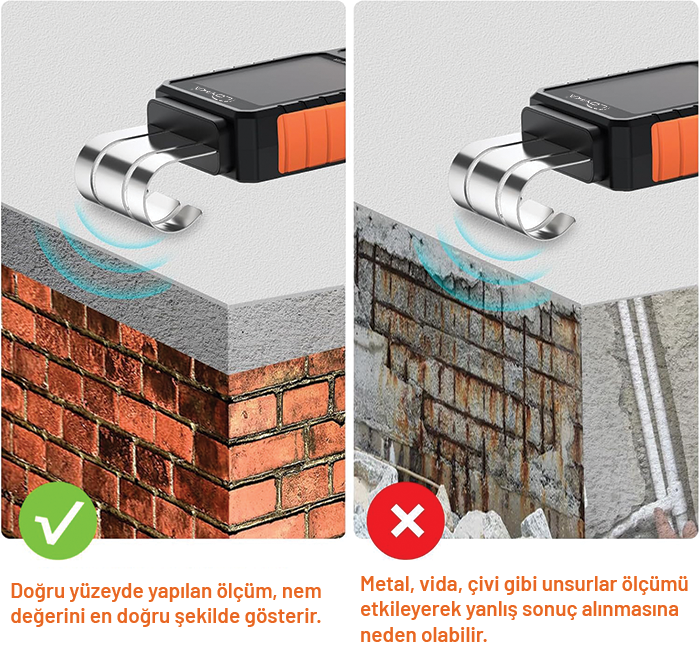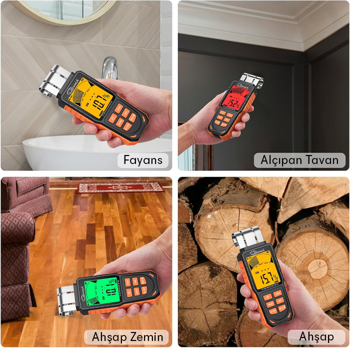 - Tahribatsız nem ölçümü: Yüzeyi delmeden/kırmadan nem dağılımını pratik şekilde tespit eder.